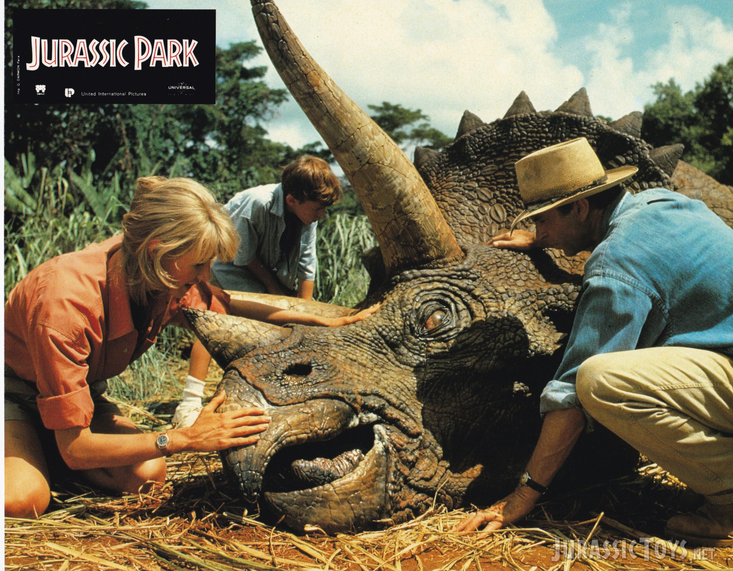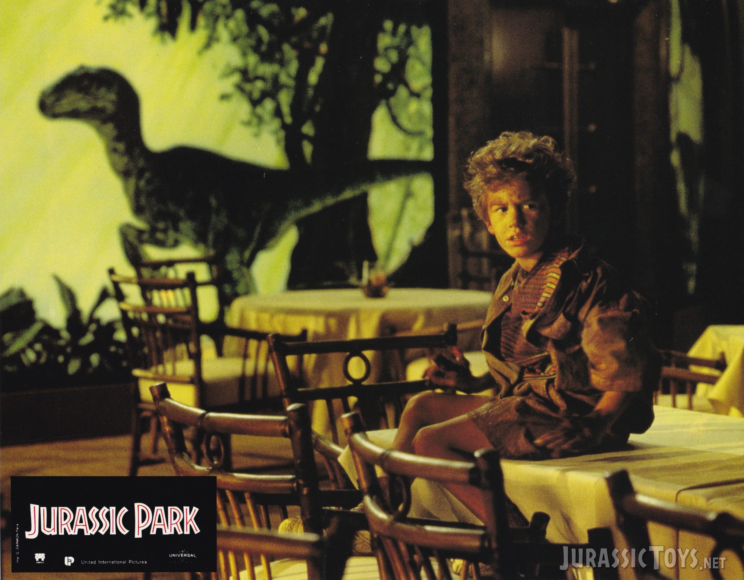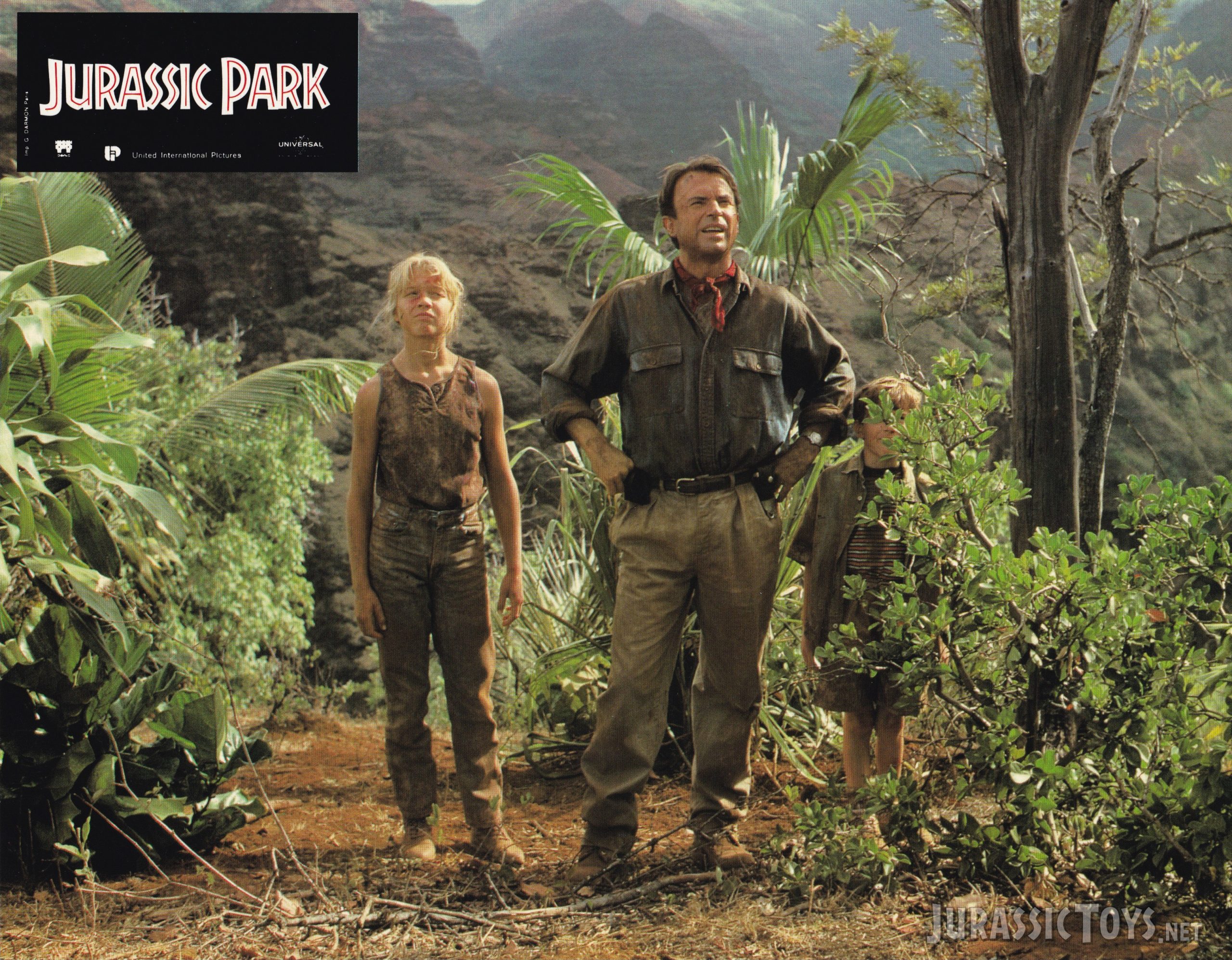 This original 1993 set of Jurassic Park lobby cards captures the excitement and wonder of Steven Spielberg’s groundbreaking adventure. Originally featuring twelve striking promotional images — of which Jurassic Toys proudly owns seven — the set showcases key scenes from the film.