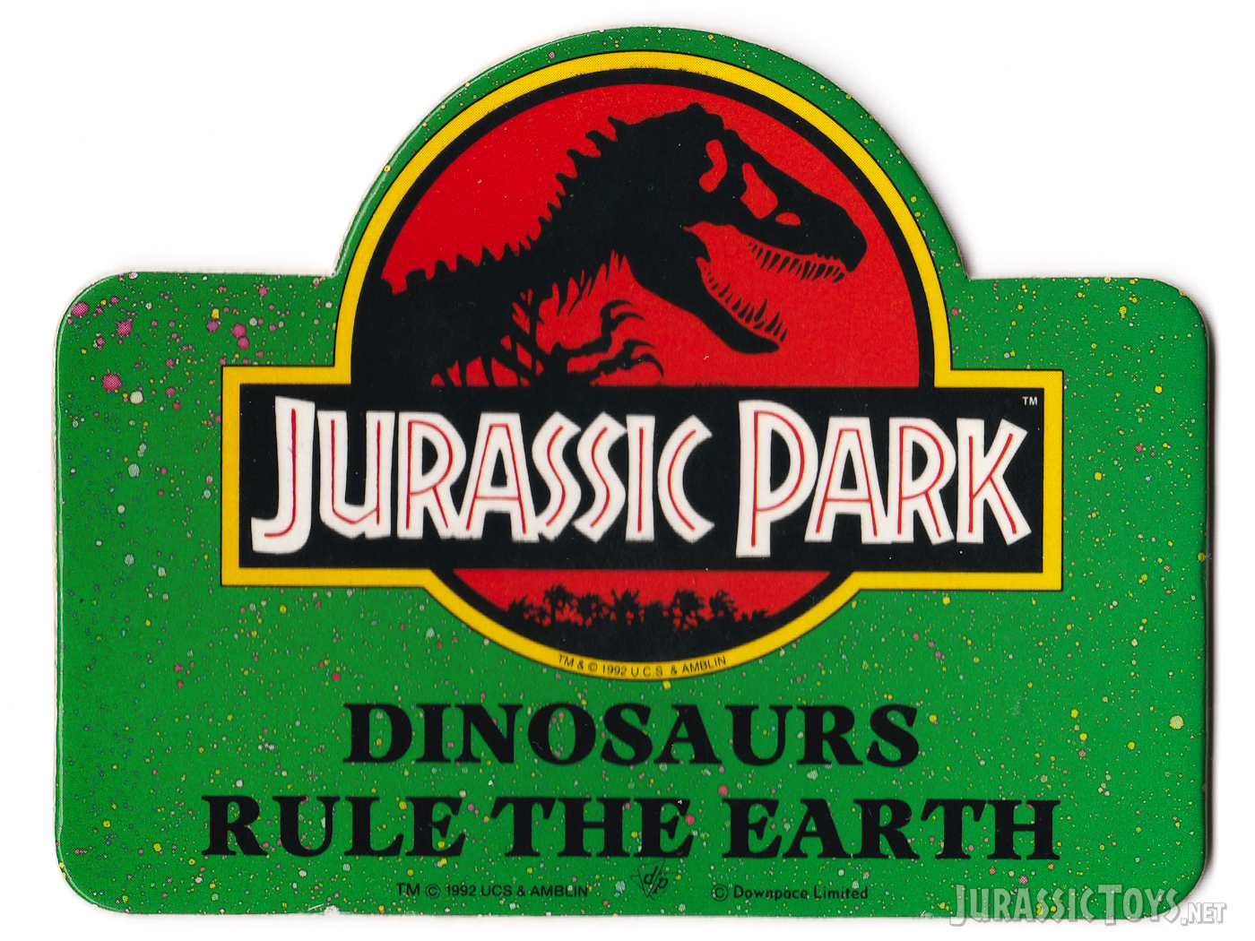 This version features the Jurassic Park logo, with the slogan “DINOSAURS RULE THE EARTH”.
