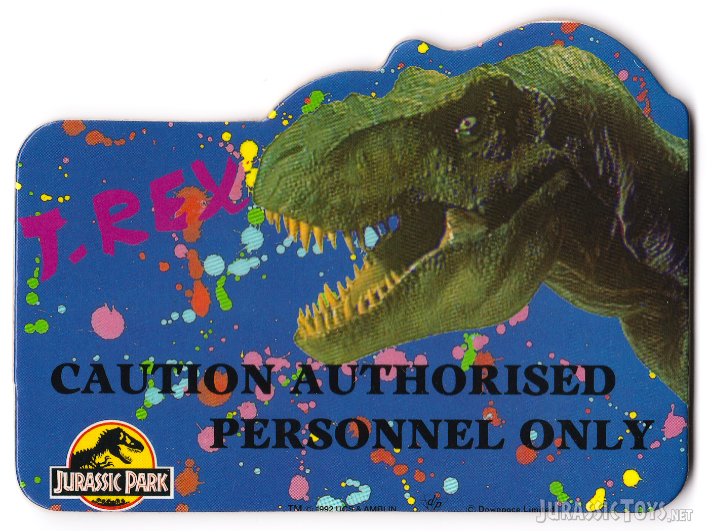 This version features T-Rex, with the warning “CAUTION AUTHORISED PERSONNEL ONLY”.