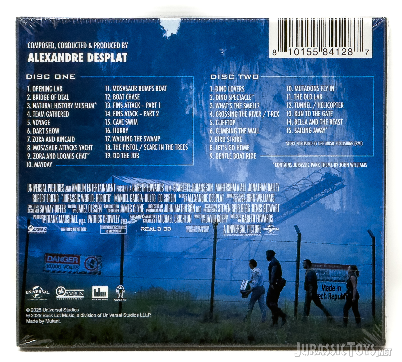 The original motion picture soundtrack, composed by Alexandre Desplat, presented on CD format. Alongside Desplat’s sweeping and orchestrally layered score, this edition also incorporates thematic elements from John Williams’ classic Jurassic Park compositions, maintaining a musical thread that links the film’s modern sound to its cinematic origins.