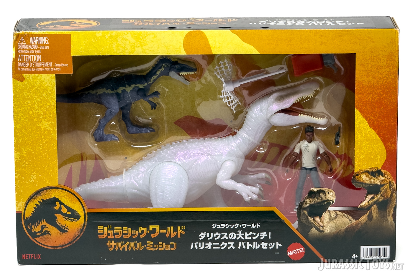This Peril Pack ties directly into Jurassic World: Chaos Theory Season 2, recreating a high-tension moment between Darius Bowman and the menacing Baryonyx. The set includes a series-accurate Darius figure (complete with his dirt-stained shirt), an exclusive Baryonyx, and a net launcher accessory.