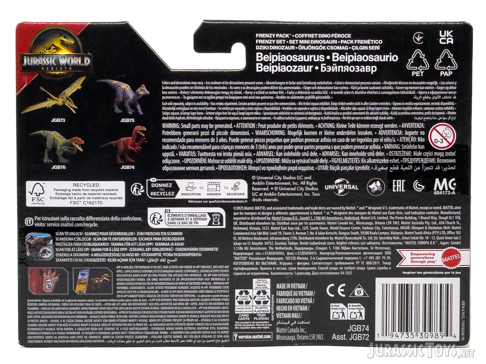 The Frenzy Pack Beipiaosaurus is a small-scale dinosaur figure with basic articulation, inspired by the dinosaur discovered in modern-day China.