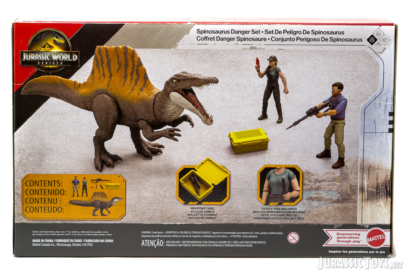 Designed to bring a thrilling scene from Jurassic World Rebirth to life, the Spinosaurus Danger Set features an exclusive, movie-inspired Spinosaurus figure in vibrant colors, accompanied by two 3.75‑inch human figures—Zora Bennett and Dr. Henry Loomis. The pack includes a suite of realistic accessories: a two-part DNA extractor that fits into its own carrying case (straight from the film), plus a utility tool, shoulder holster, and flare gun.